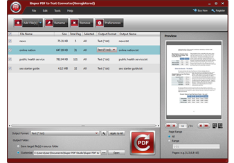 PDF to Text Converter can help you read PDF more conveniently on computer or eBook Reader. This PDF Converter can professionally convert PDF file to txt format for you. Moreover, PDF to Text Converter can store the original text, layout, table and images etc. Also it can convert image-based scanned PDF with OCR technology. If you only want to convert some pages of the PDF file, you can select consecutive page numbers or broken page numbers.